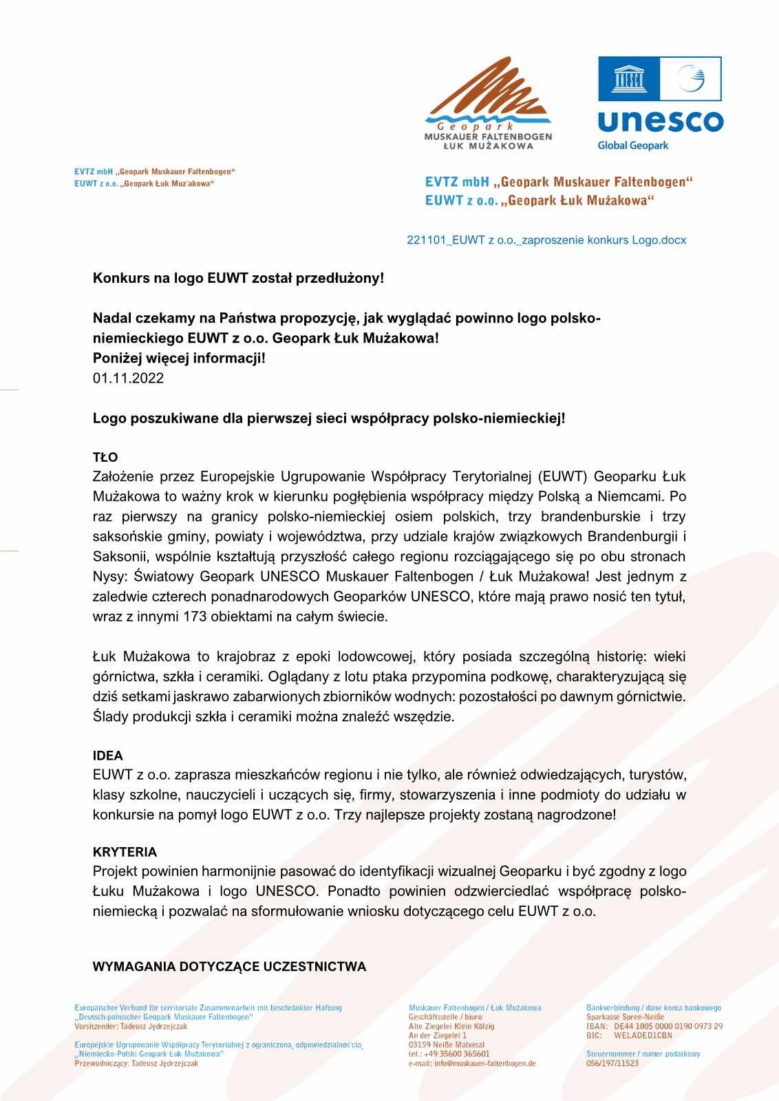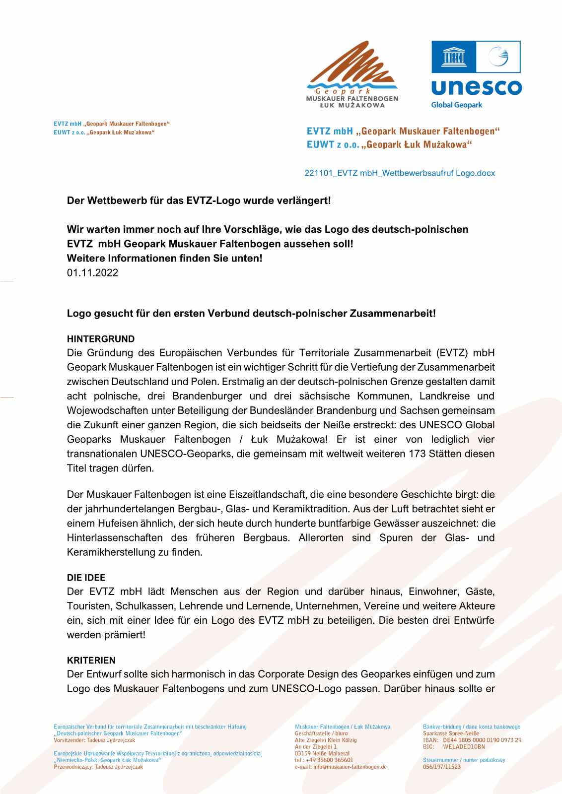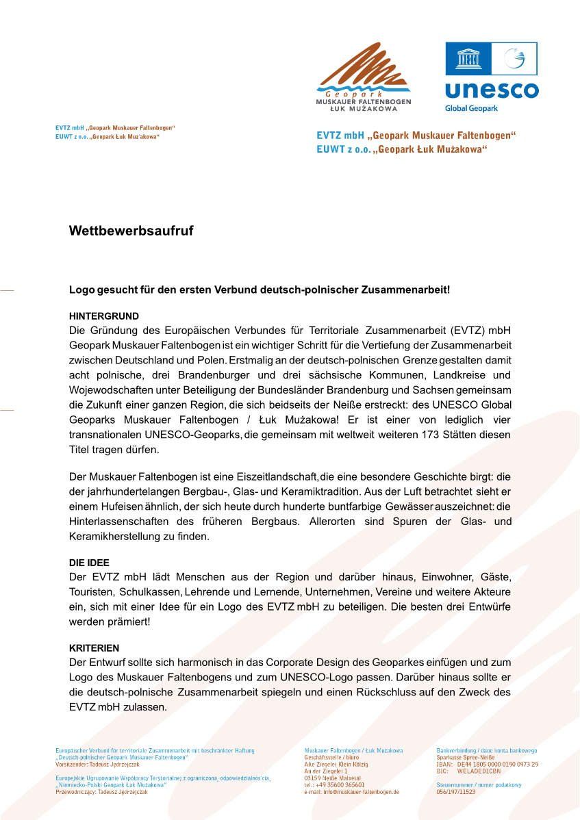 Der EVTZ mbH lädt Menschen aus der Region und darüber hinaus, Einwohner, Gäste, Touristen, Schulkassen, Lehrende und Lernende, Unternehmen, Vereine und weitere Akteure ein, sich mit einer Idee für ein Logo des EVTZ mbH zu beteiligen.